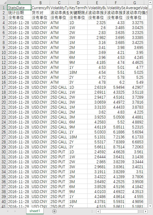 统计日期 货币对 波动率类型 关键期限点 波动率报买(%) 波动率报卖(%) 波动率均值(%)
