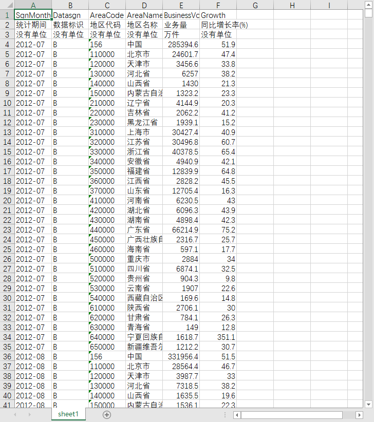 统计期间 数据标识 地区代码 地区名称 业务量 同比增长率(%)