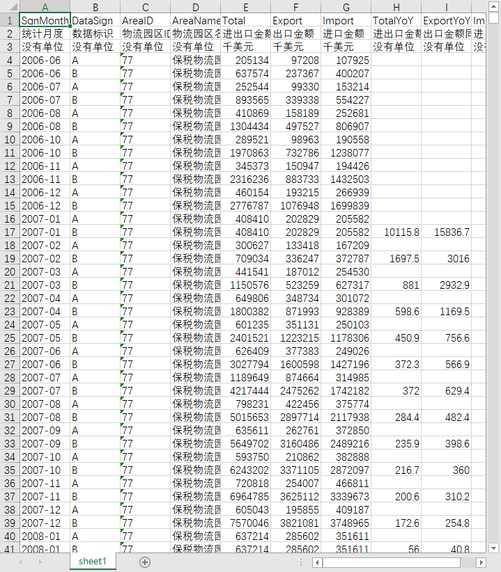 统计月度 数据标识 物流园区ID 物流园区名称 进出口金额 出口金额 进口金额 进出口金额同比(%) 出口金额同比(%) 进口金额同比(%)