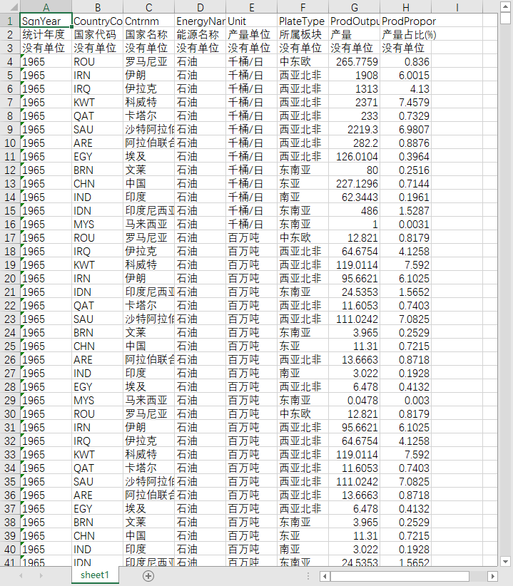 统计年度 国家代码 国家名称 能源名称 产量单位 所属板块 产量 产量占比(%)