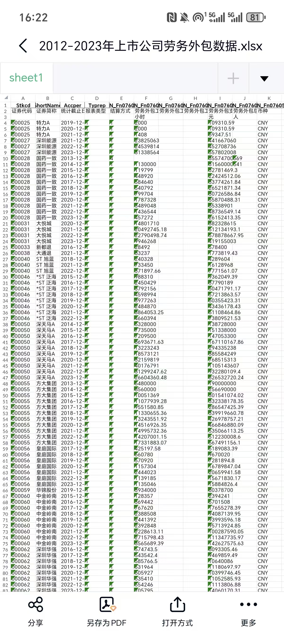 数据涵盖了上市公司劳务外包报酬总额、劳务外包工时、外包工作量等重要指标,旨在助力企业和学术界更深入地了解劳务外包所产生的经济影响。