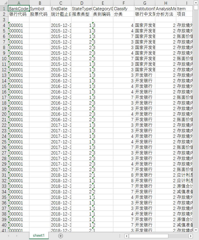银行代码 股票代码 统计截止日期 报表类型 类别编码 分类 银行中文简称 分析方法 项目 期初余额 期末余额 说明