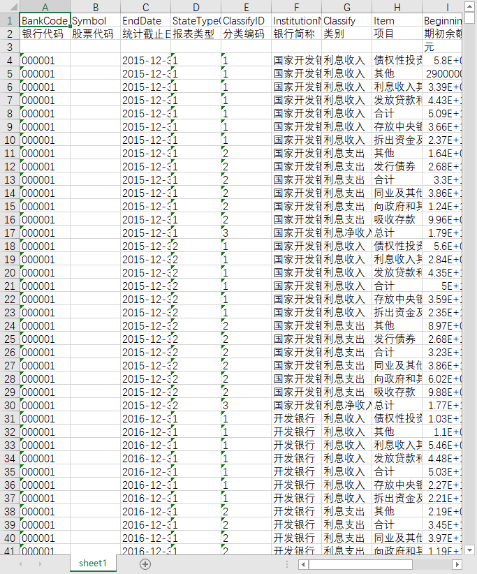银行代码 股票代码 统计截止日期 报表类型 分类编码 银行简称 类别 项目 期初余额 期末余额 说明