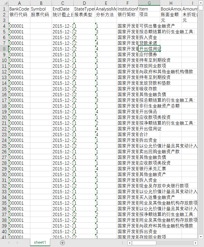 银行代码 股票代码 统计截止日期 报表类型 分析方法 银行简称 项目 账面金额 未折现合同现金流入/流出 无期限 逾期/实时偿还 1个月内 1个月至3个月 3个月至1年 1年以内 1年至5年 5年以上 其他 合计 说明