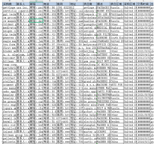 采购商 联系人 邮箱 电话 官网 地址 供应商 描述 供应区域 采购区域 交易时间 出货港口 卸货港口 总金额 提单编号