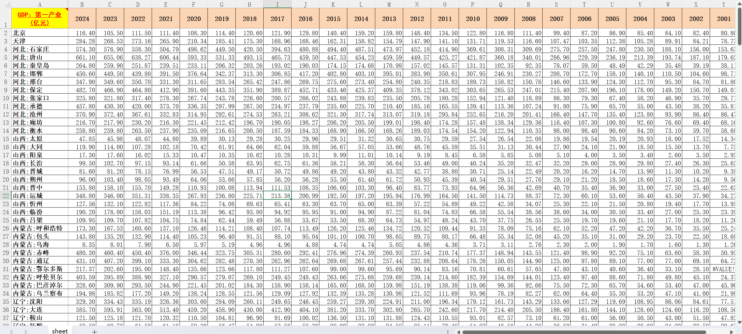 全国各地级市城市地区国内生产总值人均GDP第一产业第二产业第三产业1990-2023