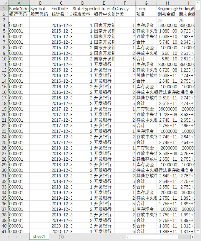 银行代码 股票代码 统计截止日期 报表类型 银行中文简称 分类 项目 期初余额 期末余额 说明