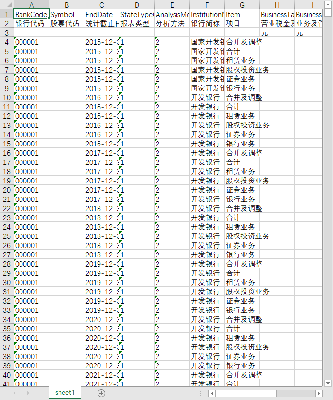 银行代码 股票代码 统计截止日期 报表类型 分析方法 银行简称 项目 营业税金及附加 业务及管理费 资产减值损失 其他业务成本 营业支出合计 说明