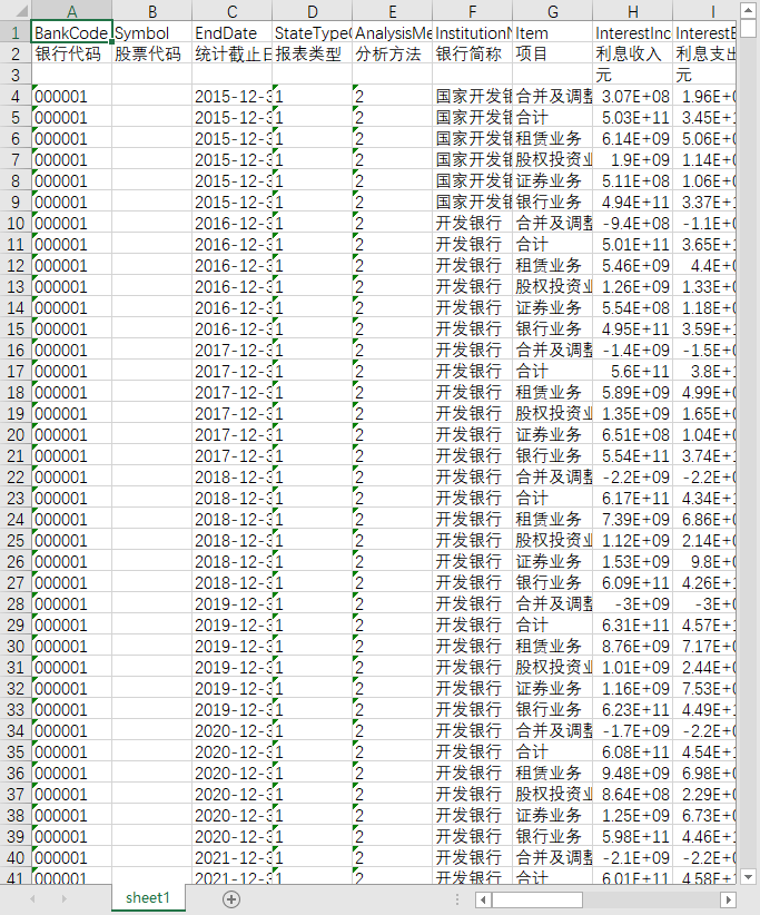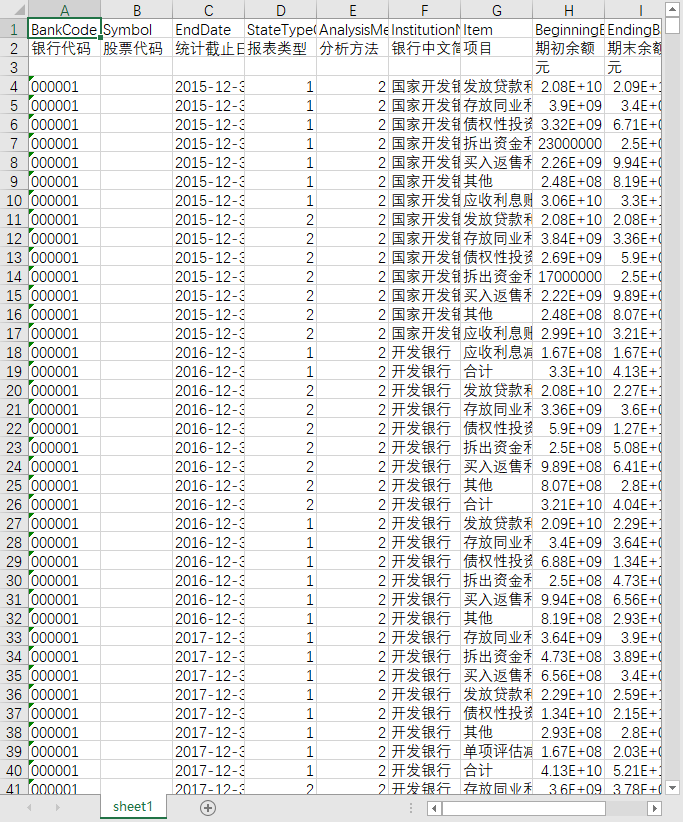 银行代码 股票代码 统计截止日期 报表类型 分析方法 银行中文简称 项目 期初余额 期末余额 说明
