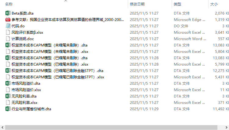 上市公司权益资本成本股权融资成本数据2000-2024CAPM模型综合市场年Beta值无风险利率市场风险溢价