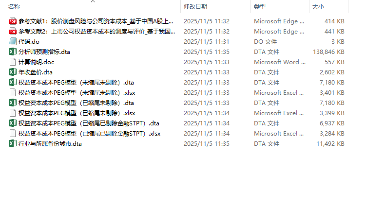 上市公司权益资本成本股权融资成本数据2001-2024PEG模型每股收益分析师预测指标等