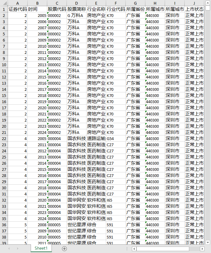 证券代码 时间 股票代码 股票简称 行业名称 行业代码 所属省份 所属城市代码 所属城市 上市状态 资源配置效率1:残差小于等于的全部取0 资源配置效率2:残差取绝对值