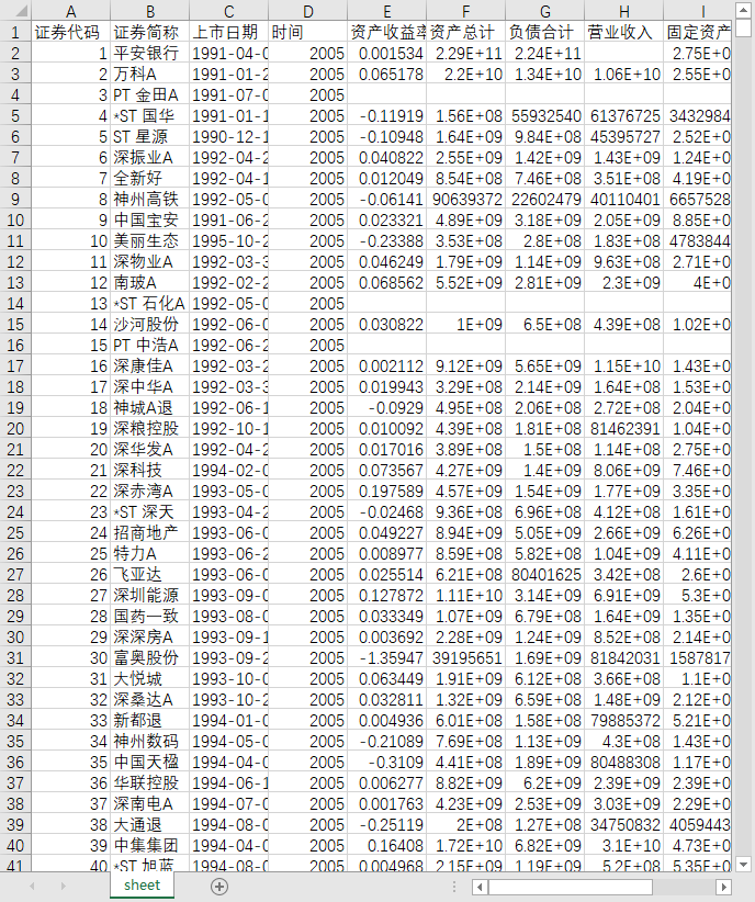 证券代码 证券简称 上市日期 时间 资产收益率A 资产总计 负债合计 营业收入 固定资产原值 首次上市日期 公司成立日期