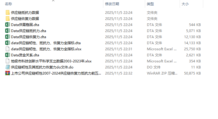 参考张树山老师研究供应链韧性、供应链抵抗力、供应链恢复力数据。供应链韧性基于韧性理论框架及现有学术研究,通常体现在供应链应对外部扰动时的抗压效能与复原效能。