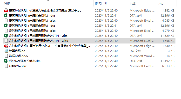 包含三个版本,高管绿色认知(未缩尾未剔除)、高管绿色认知(已缩尾未剔除)、高管绿色认知(已缩尾已剔除金融STPT)