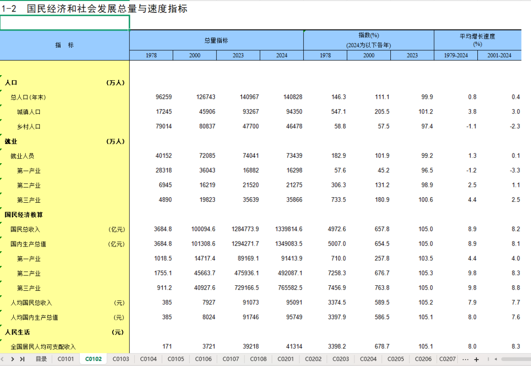 2024年中国统计数据【Excel】