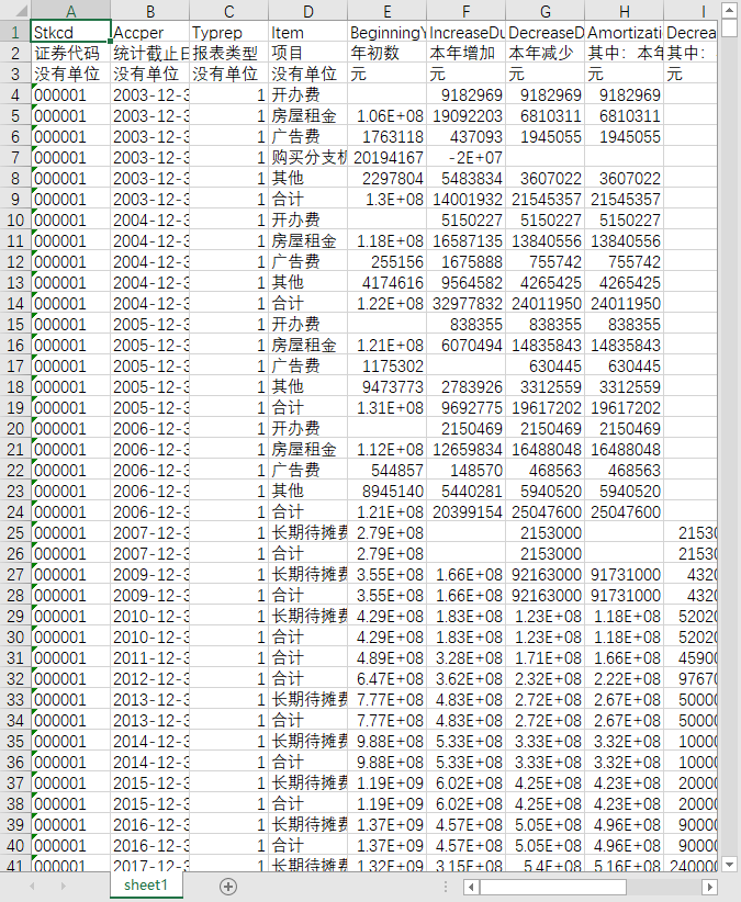 上市公司长期待摊费用2003-2024开办费房屋租金广告费租赁费等