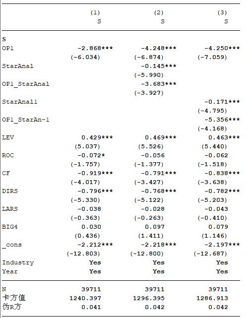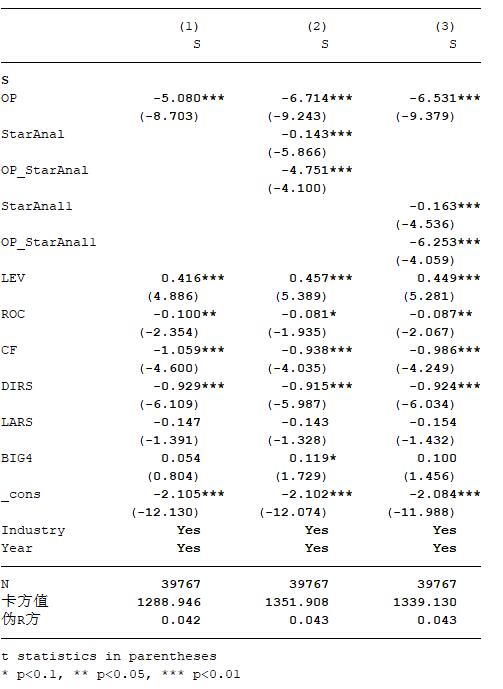 明星分析师跟踪与审计意见购买回归结果