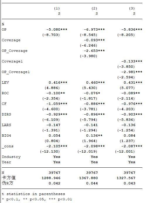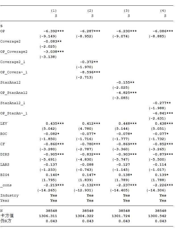 分析师跟踪与审计意见购买回归结果