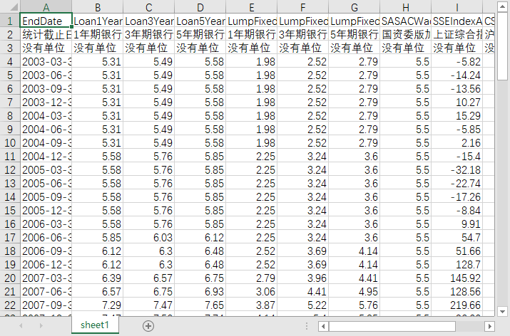统计截止日期 1年期银行短期贷款利率(%) 3年期银行短期贷款利率(%) 5年期银行短期贷款利率(%) 1年期银行定期存款利率(%) 3年期银行定期存款利率(%) 5年期银行定期存款利率(%) 国资委版加权平均资本成本(%) 上证综合指数一年市场回报率(%) 沪深300指数一年市场回报率(%) 深证综合指数一年市场回报率(%)