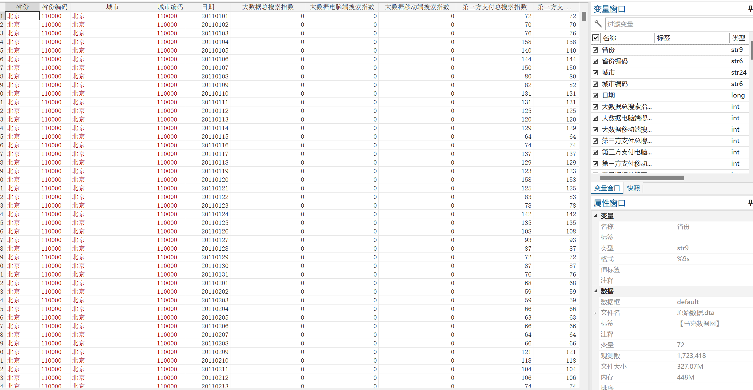 城市编码 | 日期 | 大数据总搜索指数 |