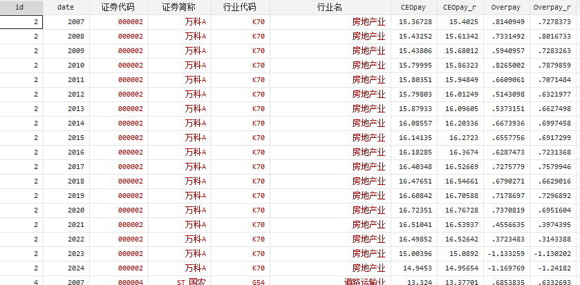 【推荐】A股上市公司管理者超额薪酬数据和Stata代码(2005-2024年)