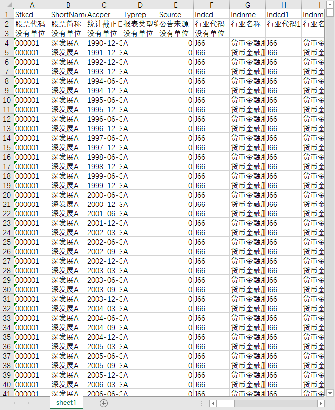 股票代码 股票简称 统计截止日期 报表类型编码 公告来源 行业代码 行业名称 行业代码1 行业名称1 流动资产比率 现金资产比率 应收类资产比率 营运资金对流动资产比率 营运资金比率 营运资金对净资产比率 非流动资产比率 固定资产比率 无形资产比率 有形资产比率 所有者权益比率 留存收益资产比 长期资产适合率 股东权益对固定资产比率 流动负债比率 经营负债比率 金融负债比率 非流动负债比率 母公司所有者权益占比 少数股东权益占比 主营业务利润占比 金融活动利润占比 营业利润占比 营业外收入占比 流转税率 综合税率A 综合税率B 所得税率 归属于母公司净利润占比 少数股东损益净利润占比 净利润综合收益占比 其他综合收益占比 归属于母公司综合收益占比 归属于少数股东综合收益占比 母公司所有者权益与投入资本比