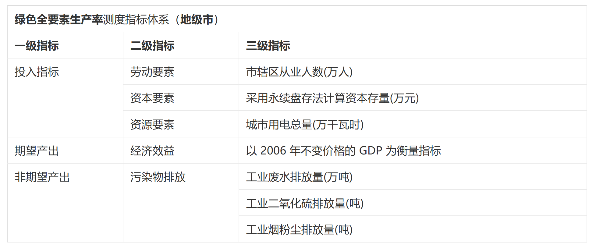 城市 代码年份 劳动投入-年末单位从业人员数-万人资本存量-万元用电量-万千瓦时实际GDP-亿元 烟尘-吨 废水-吨二氧化硫-万吨 投入期望产出 非期望产出 Global_Un_Super_SBM_VRS_eff MI_v EC_vBPC_v