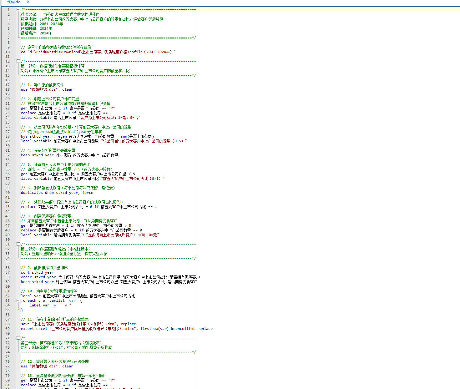 数据介绍数据名称:上市公司客户优质程度数据+dofile
