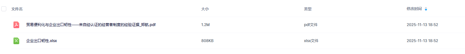 三、参考文献郑航,韩剑,杨凯.贸易便利化与企业出口韧性——来自经认证的经营者制度的经验证据[J].财经论丛(浙江财经大学学报),2025,(07):30-39.