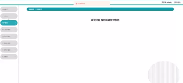 当用户访问系统网址后,首先看到的是首页界面。在这里,用户可以看到校园车辆管理系统的导航条,并通过导航条进入各功能页面进行操作。