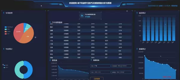 该系统利用机器学习技术,结合Django框架和Python语言开发,前端使用Vue实现,并紧密集成后端功能,提供高效的销售数据管理和预测服务。后端部分采用了MySQL数据库来存储和管理数据,确保了信息的安全与高效访问。本系统主要服务于两类用户:普通用户和管理员。普通用户可以查阅汽车销售信息、公告内容及个人中心管理。而管理员则拥有更广泛的功能权限,包括仪表盘功能、用户管理和数据管理等,以及发布公告资讯和进行销售预测的能力。管理员可根据省份、车身类型、年份、搜索量等多个因素来实施销量预测,并查看、修改或删除预测结果。