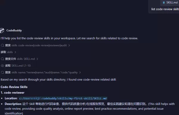 - 验证 skill 是否生成。
