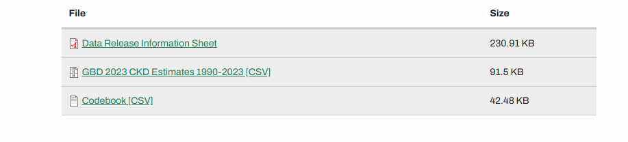 这是一篇关于全球疾病负担研究的数据发布信息文章,主要介绍了2023年全球疾病负担研究(GBD 2023)中关于慢性肾脏病(CKD)的死亡率、患病率以及伤残调整生命年(DALYs)的估计数据。以下是对这些核心内容的简要概述: