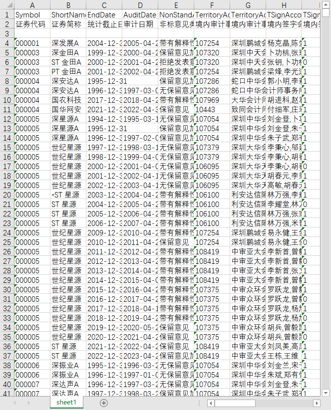证券代码 证券简称 统计截止日期 审计日期 非标意见类型 境内审计事务所ID 境内审计事务所 境内签字会计师 境内签字会计师是否发生变更 境外审计事务所ID 境外审计事务所 境外签字会计师 境外签字会计师是否发生变更 审计费用合计 审计费用:境内审计费用金额 审计费用:境外审计费用金额 是否更换境内审计事务所 境内审计事务所更换原因编码 变更原因描述