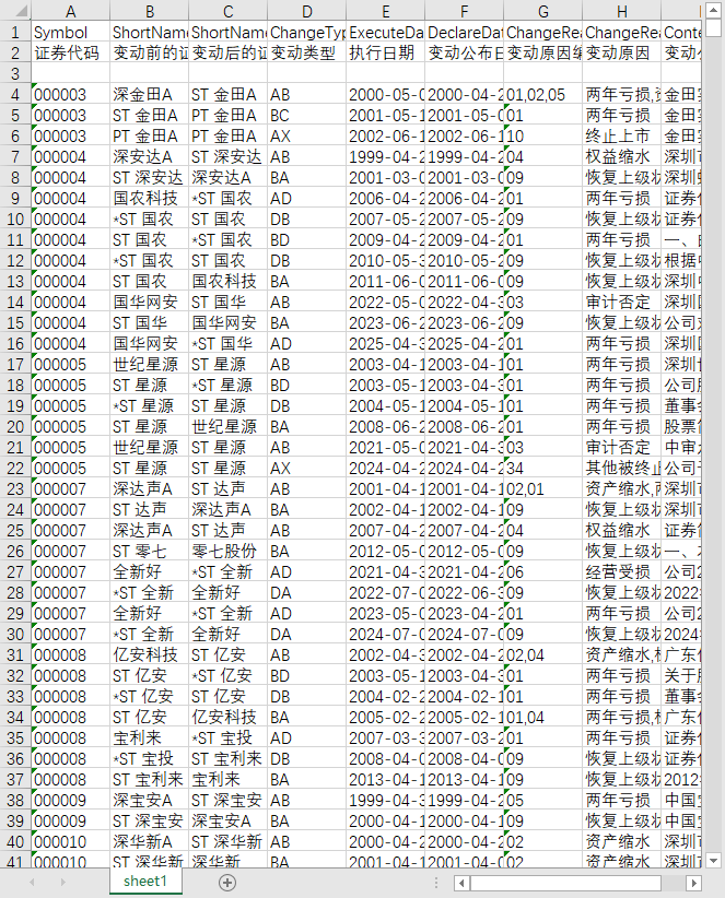 证券代码 变动前的证券简称 变动后的证券简称 变动类型 执行日期 变动公布日期 变动原因编码 变动原因 变动公告内容