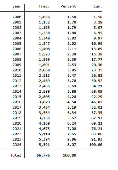- 文件格式:Dta格式(使用Stata打开)、Xlsx格式(使用Excel打开)