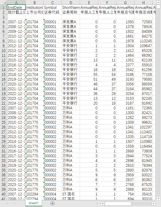 上市公司AI人工智能词频统计词频明细2007-2024大数据风控增强智能深度学习特征识别