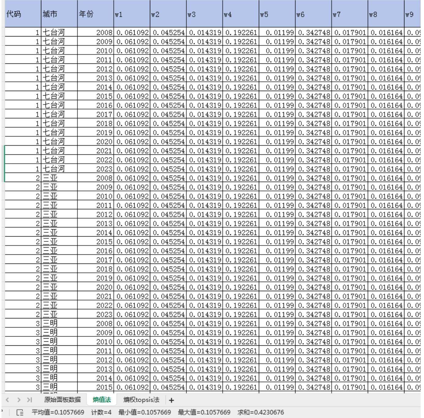 代码、城市、年份、共同富裕指数(熵值法)、共同富裕指数(熵权topsis法)