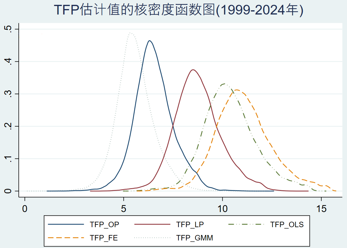 2、更多说明:含OLS、FE、LP、OP、GMM 5种TFP测算方法