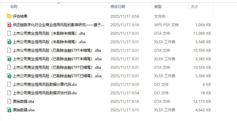- 三个版本:商业信用风险(未缩尾未剔除)、商业信用风险(已缩尾未剔除)、商业信用风险(已缩尾已剔除金融STPT)