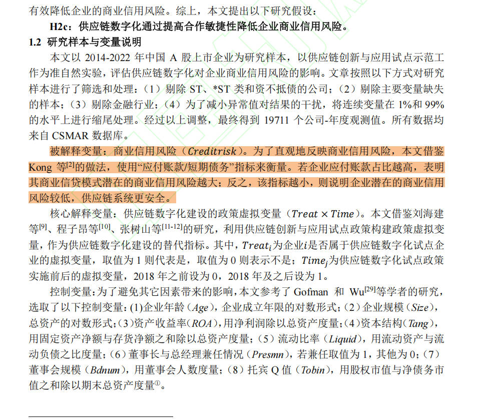 - 供应链数字化对企业商业信用风险的影响研究——基于供应链敏捷性视角