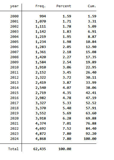 - 文件格式:Dta格式(使用Stata打开)、Xlsx格式(使用Excel打开)