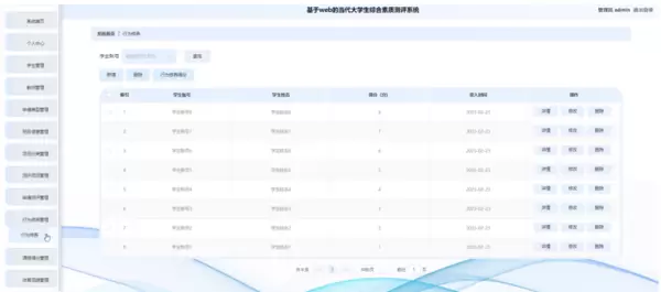 管理员点击行为修养管理:在行为修养管理页面中对学生账号、学生姓名、得分(分)、录入时间等内容,