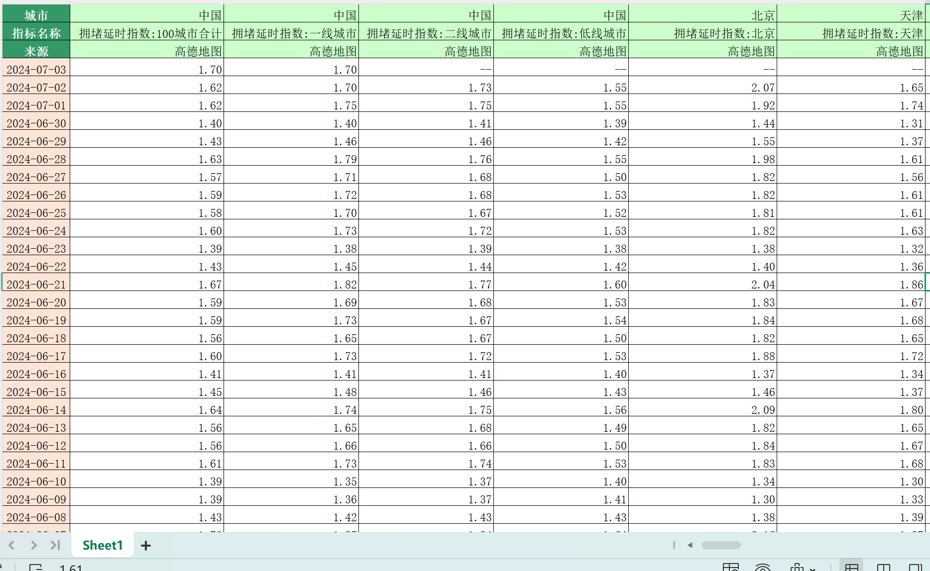 数据名称:高德地图地级市拥堵延时指数日度数据