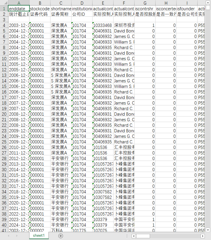 统计截止日期 证券代码 证券简称 公司ID 实际控制人ID 实际控制人名称 是否控股股东 是否一致行动人 是否公司创始人 实际控制人性质编码 实际控制人性质 实际控制人持有上市公司股份性质编码 实际控制人持有上市公司股份性质 实际控制人持有上市公司所有权比例 实际控制人持有上市公司控制权比例 两权分离率 实际控制人控制的其他同行证券代码 实际控制人控制的其他同行股票数量 实际控制人控制的其他非同行证券代码 实际控制人控制的其他非同行股票数量 是否委派高管任职本公司 是否委派高管任职其他同行上市公司 委派高管任职其他同行公司证券代码 委派高管任职其他同行公司证券数量 是否委派高管任职其他非同行上市公司 委派高管任职其他非同行公司证券代码 委派高管任职其他非同行公司证券数量 是否委派董事任职本公司 是否委派董事任职其他同行上市公司 委派董事任职其他同行公司证券代码 委派董事任职其他同行公司证券数量 是否委派董事任职其他非同行上市公司 委派董事任职其他非同行公司证券代码 委派董事任职其他非同行公司证券数量 是否委派监事任职本公司 是否委派监事任职其他同行上市公司 委派监事任职其他同行公司证券代码 委派监事任职其他同行公司证券数量 是否委派监事任职其他非同行上市公司 委派监事任职其他非同行公司证券代码 委派监事任职其他非同行公司证券数量