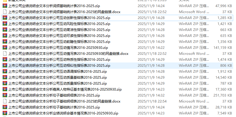 上市公司业绩说明会文本数据集2016-2025互动情况表创新风险可读性句子原文积极消极前瞻性