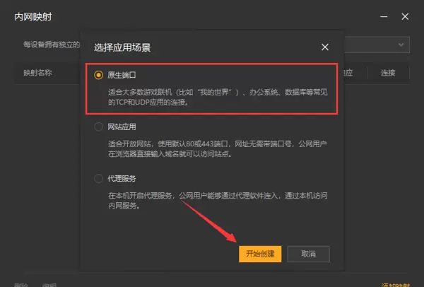 - 在弹出的窗口中选择【原生端口】选项。
