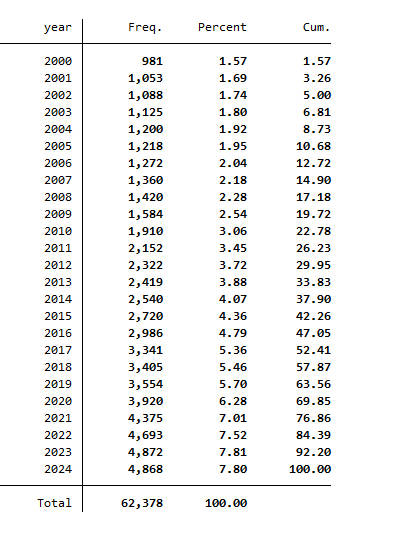 - 文件格式:Dta格式(使用Stata打开)、Xlsx格式(使用Excel打开)