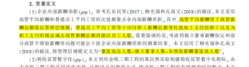 ) 等的研究,本文将企业薪酬差距(